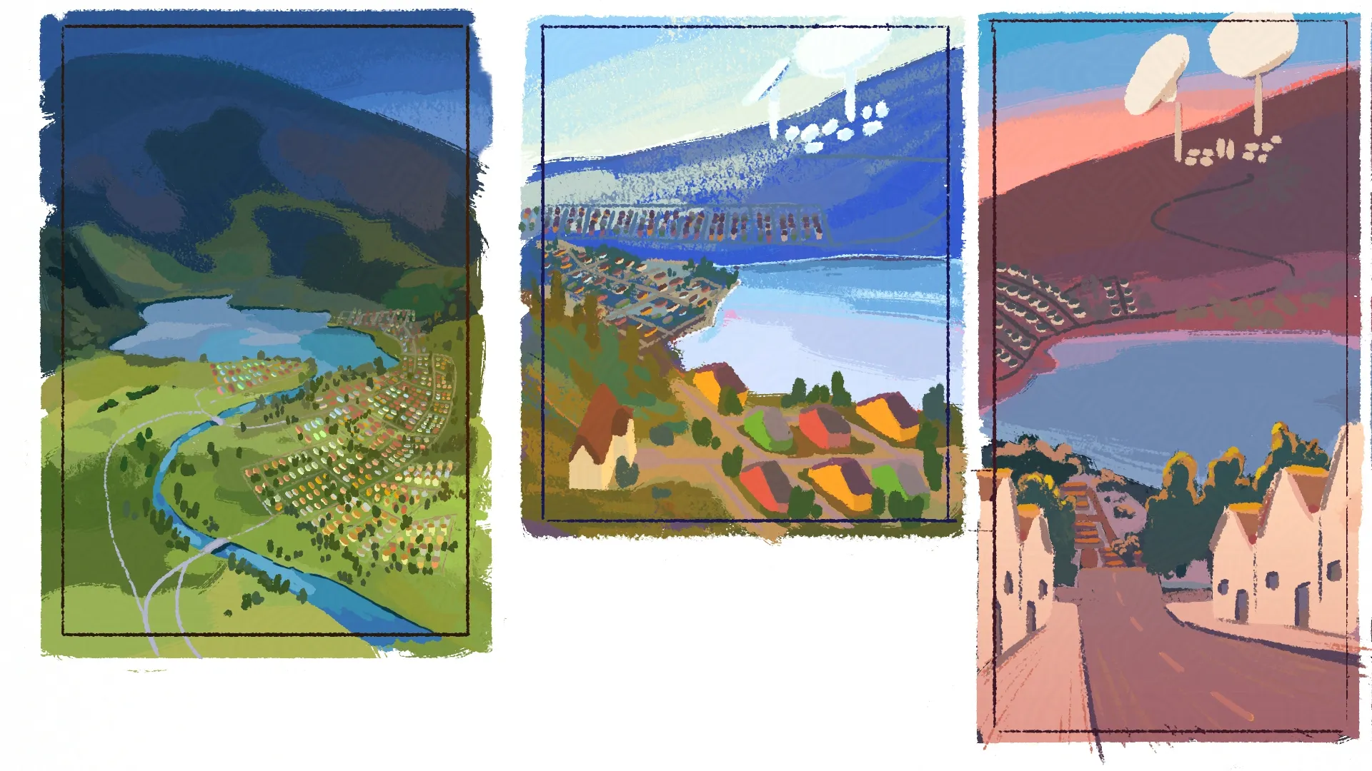 These are visual development for the series “Billie and the Rockets” (an original project), and “Chooks”,